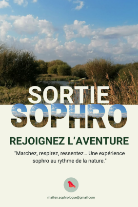 Je propose des séances de groupe en pleine nature à Sarzeau et ses alentours avec mes « Sorties Sophro », accessibles à tous. C’est une belle occasion de découvrir la sophrologie dans le cadre apaisant et ressourçant de notre bel environnement.